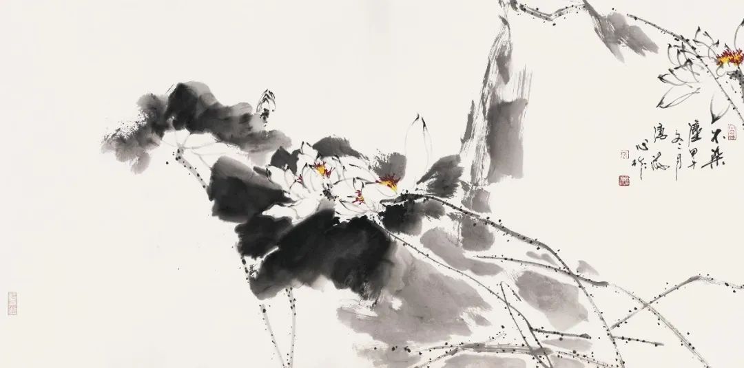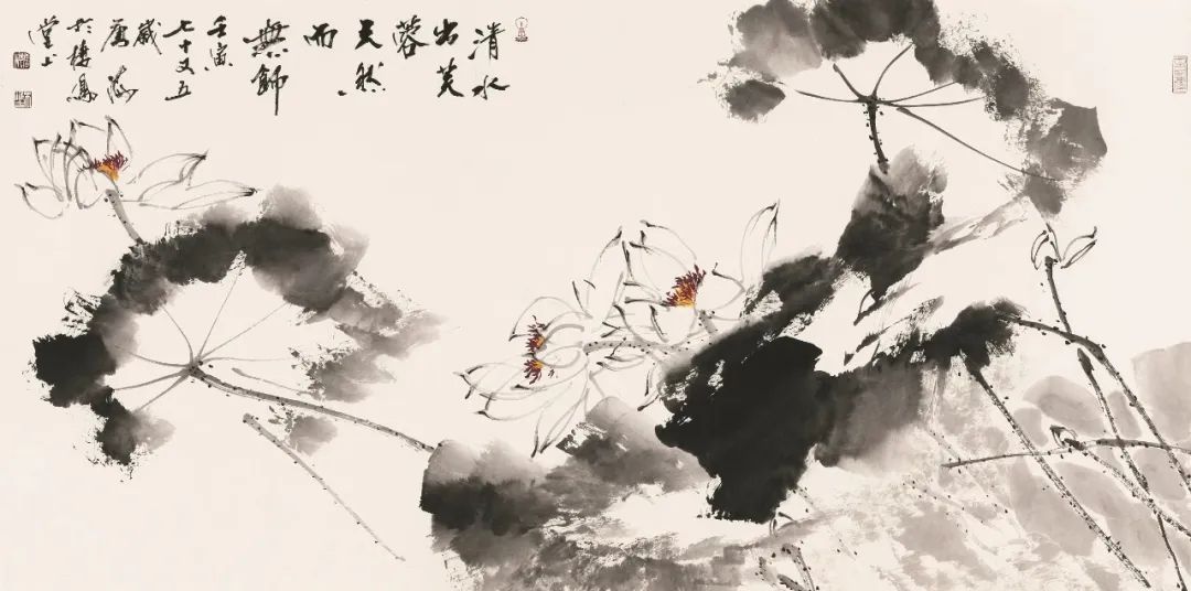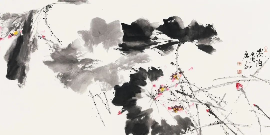 唐海的墨荷大写意作品,以其热烈、豪放、泼辣与肆意潇洒的风格,深受艺术爱好者的喜爱和赞誉。